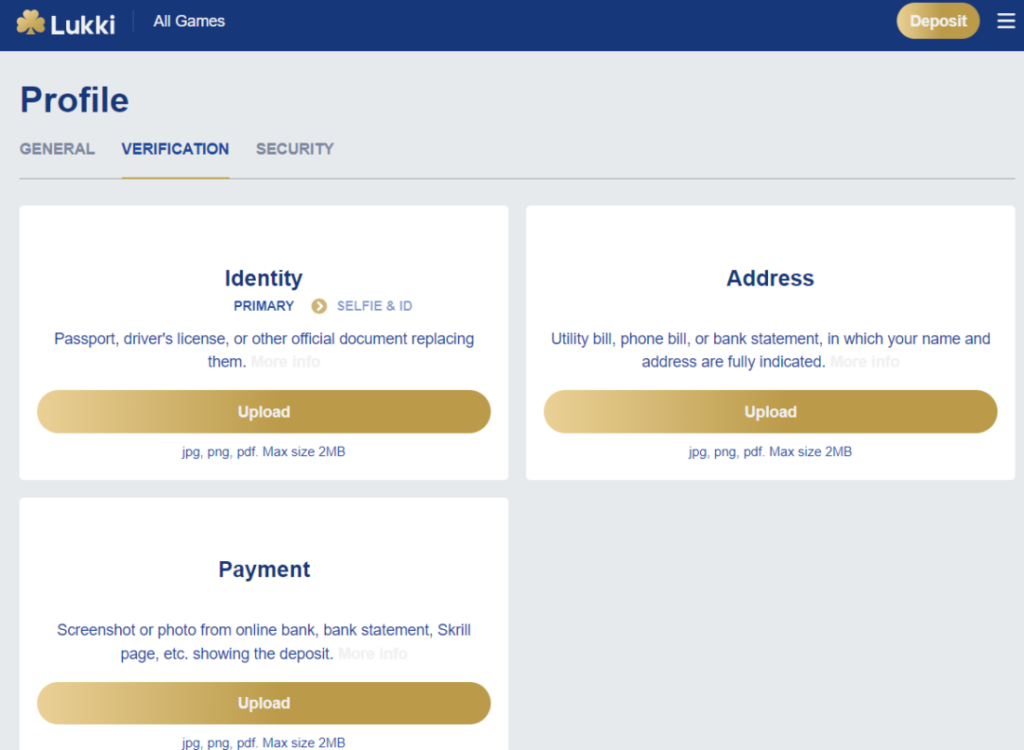 To ensure the security of your account and comply with regulatory requirements, LukkiCasino may request verification documents. Follow these steps to complete the verification process: